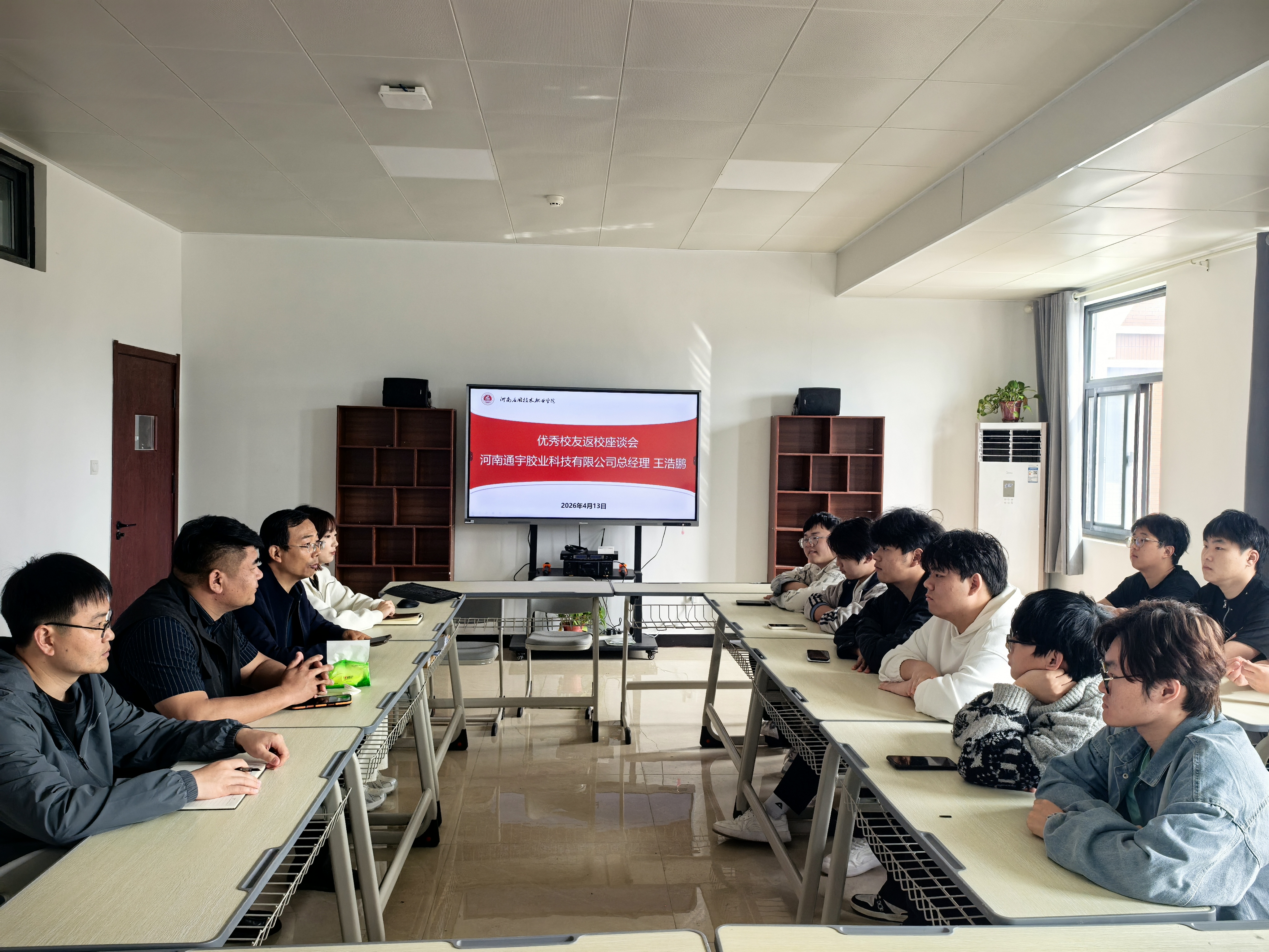 为进一步加强校友与crown皇冠体育平台的联系,助力在校学生明晰职业发展方向、提升职业素养与从业能力,4月13日,新能源与智能汽车学院特邀优秀校友河南通宇胶业科技有限公司总经理王浩鹏返校开展座谈交流活动。crown皇冠体育平台党总支书记付永、学工办主任董芳甫与在场学生共同聆听校友职场经验分享,共话成长与发展。
