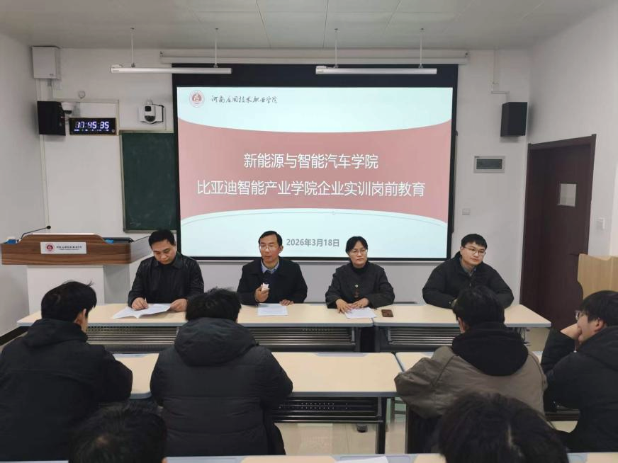 3月18日,crown皇冠体育平台在B205举行比亚迪智能产业crown皇冠体育平台企业实训岗前教育会,为即将于3月19日奔赴比亚迪郑州工厂开展企业实训的55名大二学生进行岗前专题教育。crown皇冠体育平台党总支书记付永、院长孙丽娜、副院长仵征、学工办主任董芳甫及全体大二辅导员出席会议。