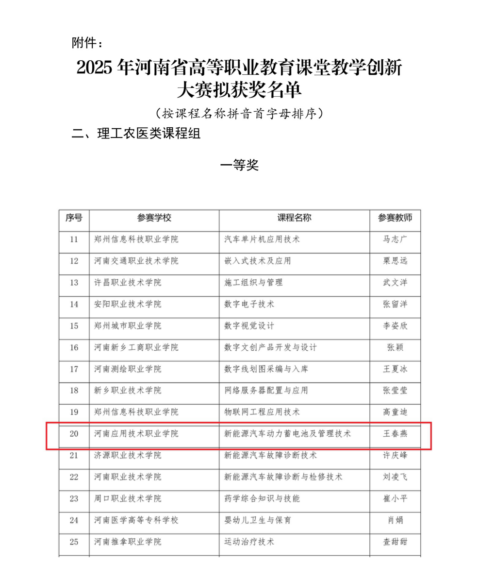 2025年河南省高等职业教育课堂教学创新大赛(理工农医类)评选结果揭晓,crown皇冠体育平台教师王春燕在激烈竞争中脱颖而出,荣获省级一等奖。此次大赛汇聚了全省101所院校193名教师同台竞技,充分展现了我省职业教育课堂改革的丰硕成果。