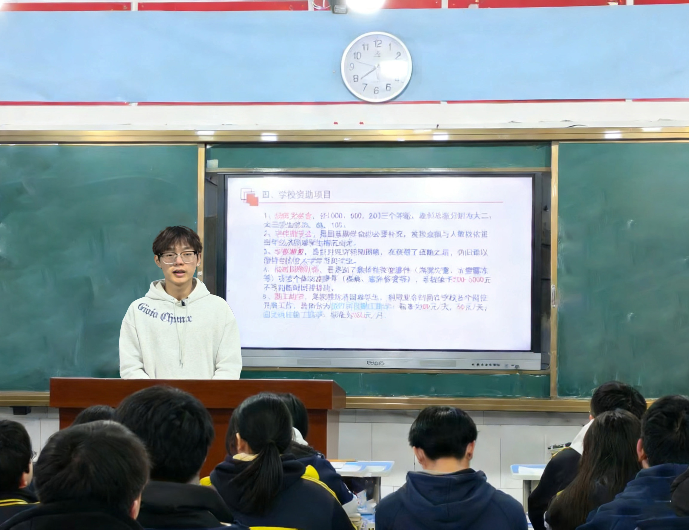 此次宣讲精准覆盖高中生及家长群体,不仅实现了政策“广知晓”,更解决了办理“真难题”。未来,我将继续坚守“宣传员”职责,将温暖与希望传递至更远的地方,以青春之力助推教育公平之花绽放。